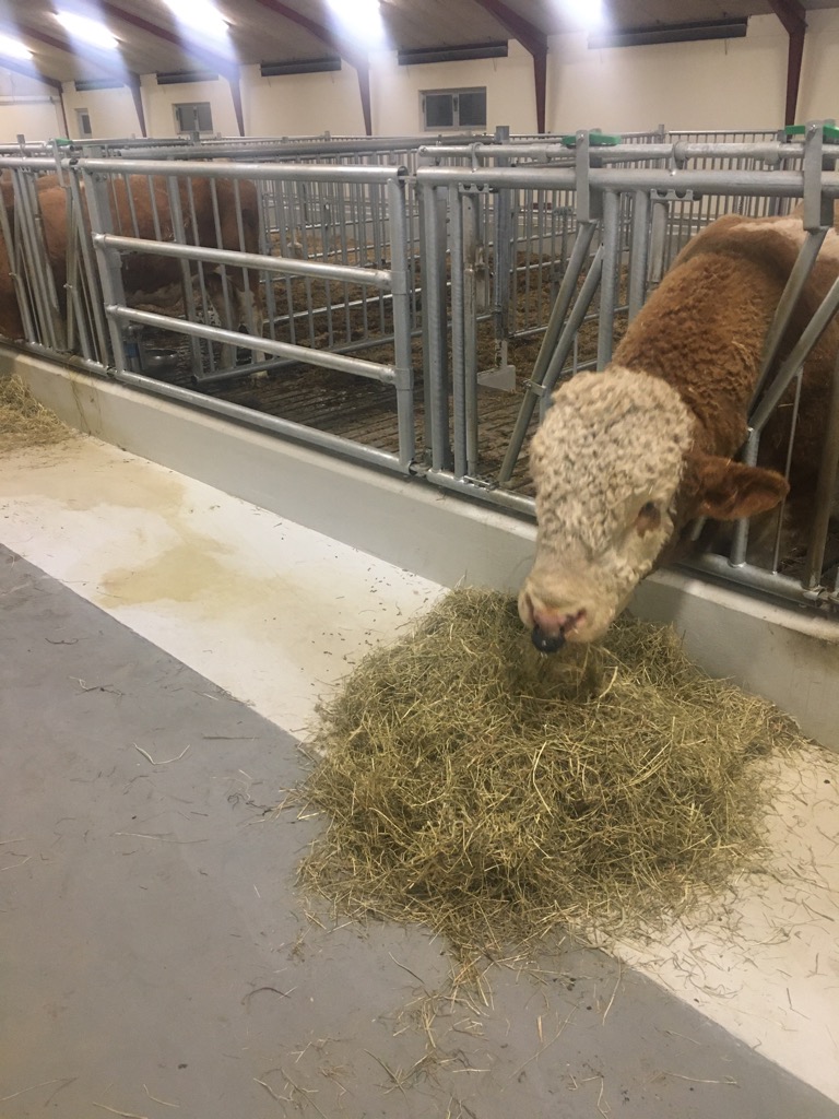 Ny ammekostald taget i brug hos Per Nielsen, Dybvad. Tidligere grisestald ændret til en særdeles flot og gennemført stald til Simmentaler køer.