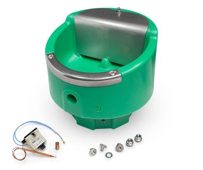 Bigcho 2 med svømmer og elopvarmning (50W/24V) sikrer frostfri vandforsyning med stabil vandstand og driftssikker funktion i stalden.