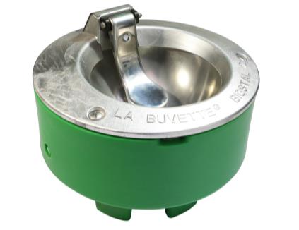 Drikkekop F10 INOX i rustfrit stål med 3/4” tilslutning sikrer en hygiejnisk og slidstærk vandløsning til kvægstalden.